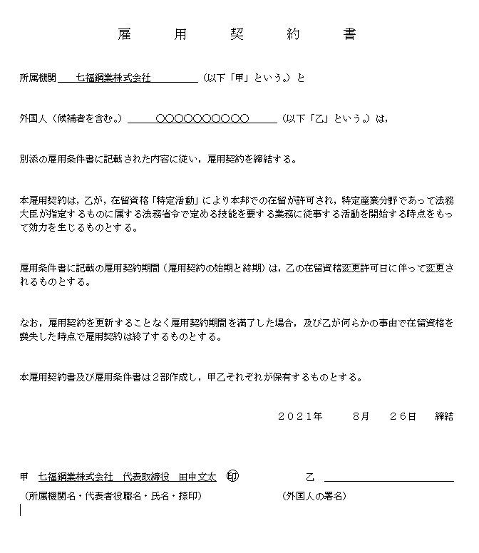 雇用契約書(こようじょうけんしょ) *Bắt buộc
