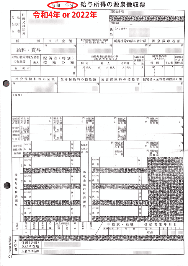 令和4年分の源泉徴収票(げんせんちょうしゅうひょう) *Bắt buộc