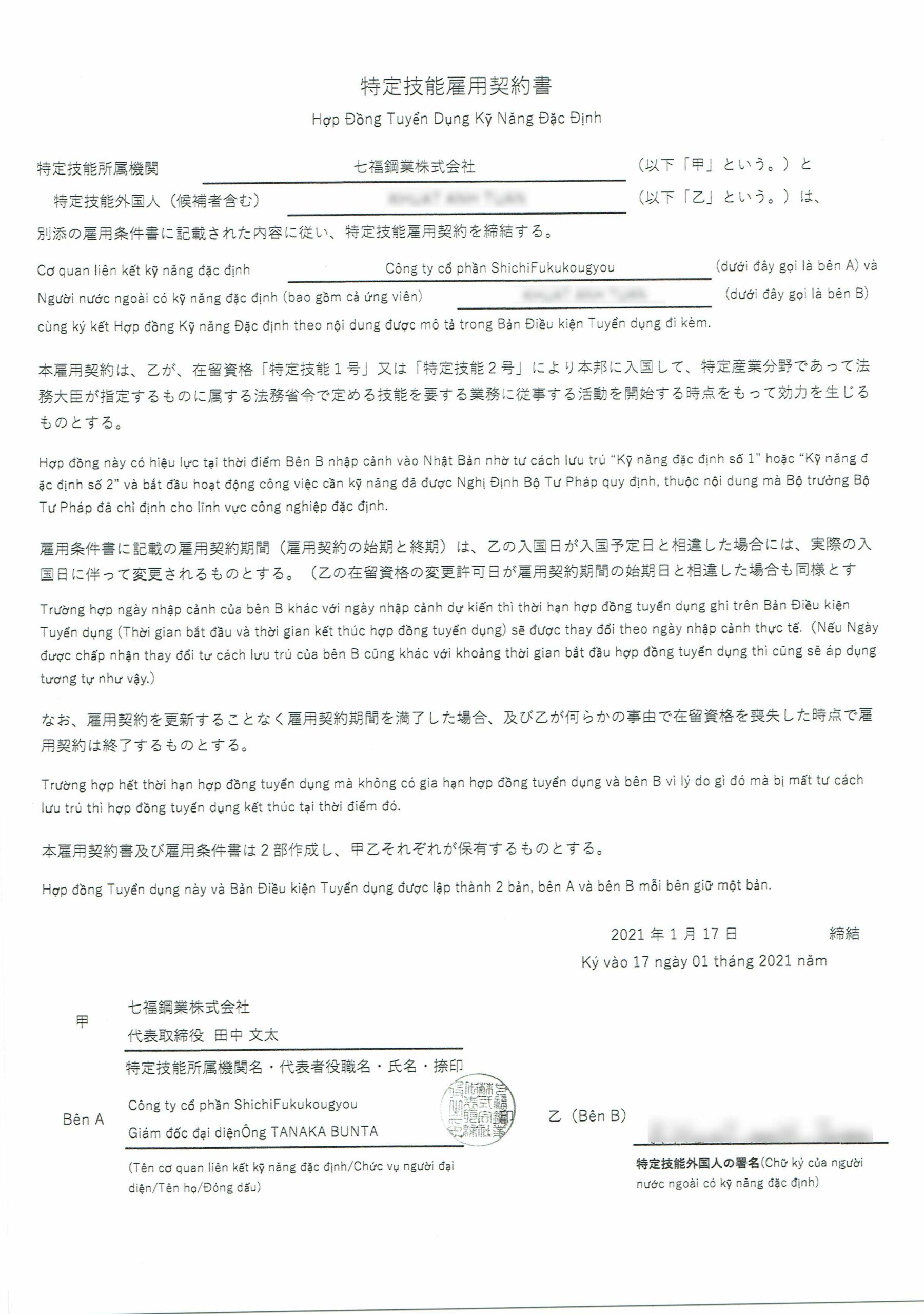 雇用契約書(こようじょうけんしょ) *Bắt buộc